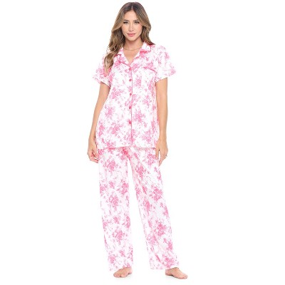 Soft and lightweight Rayon Knit Pajamas in a fun prints and patterns, coziest pajamas you'll ever own. Features Button down closure with notch collar, matching easy pull on pajama pants with elastic waistband for added comfort, These pj's offer comfortable straight fit perfect for sleeping or curling up on the couch to watch a movie.Please use our size chart to determine which size will fit you best, if your measurements fall between two sizes we recommend ordering a larger size as most people prefer their sleepwear a little looser.Medium: Measures US Size 8-10, Chests/Bust 3''-38 Large: Measures US Size 12-14, Chests/Bust 38.5-40X-Large: Measures US Size 16-18, Chests/Bust 41.5-42XX-Large: Measures US Size 18-20, Chests/Bust 43-45