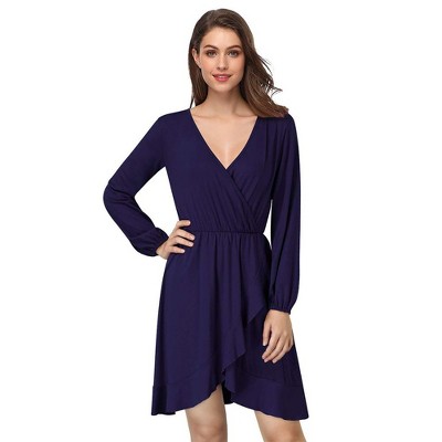 Casual V Neck Layered Long Sleeve Wedding Guest Midi Dresses for Women Flowy Dress