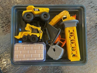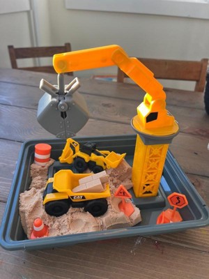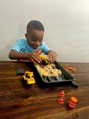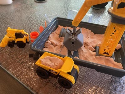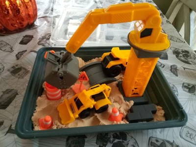[This review was collected as part of a promotion.] This is a great playset for little kids! It comes in an easy to clean up tray and top for easy storage! It has trucks and equipment as well as props and buildable mold! My kids love using their imagination with this set!
