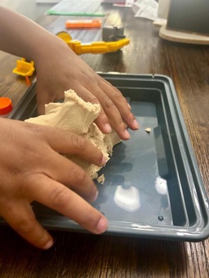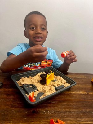 [This review was collected as part of a promotion.] This is such a great tactile toy set! I love how realistic everything is and that is comes with molds so you can set it up to look like an actual construction zone. Everything is ready to play with and you can use the tray is comes in to keep it mess free. The sand is reusable and doesn’t dry out too so your kids can keep playing with it over and over!