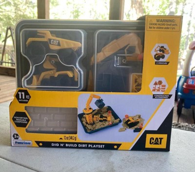 Introducing the Cat Dig N’ Build Dirt Playset – the ultimate construction experience for little builders! Equipped with 2 Little Machines™ vehicles, 12 oz of premium dirt compound, a crane, molds, and accessories, along with an easy clean up tray, budding builders can create their own rugged landscapes and construction zones. Real Cat machines are known for their high quality and these toys are no different, built to withstand the elements and perfect for indoor or outdoor play. Appropriate for ages 3 and up.