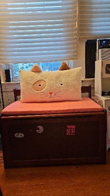 Every cat lover needs this pillow. It's perfect. I thought it was going to be smaller. Didn't check the specs or reviews lol just assumed. I was presently surprised at how big it was. I just so happened to get it for my 5 year old who's been wanting to turn the top of her toy chest into a couch. I recently got a bottom cushion but wanted to add an accent pillow. Welp, now we have a back cushion. My daughter loves it.