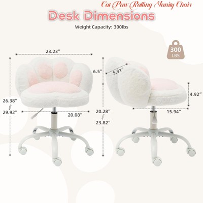 Cat Paw Rolling Vanity Chair – 360° Swivel Adjustable Height Office Chair with Plush Cushion, Wheels & Soft Backrest