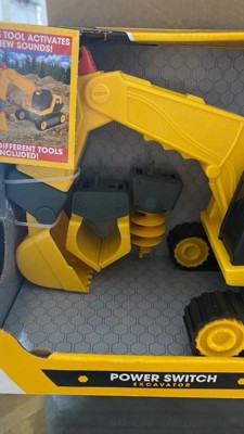 - The Power Is In Your Hands: Use the power switch to change tools quickly and maneuver the excavator's head. The buttons are large and easy for small hands to operate, putting them in control of their building site adventure.Realistic Lights and Sounds For Immersive Play: Each tool has realistic lights and sounds just like the real life version! From drilling the ground to scooping up debris, it creates an immersive play experience that’s fun and educational.