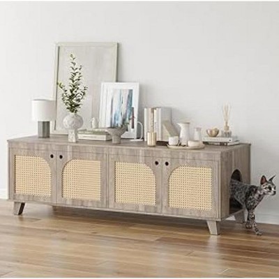 - Cats' Dream Castle:Cat litter box enclosure is a combination of a cat house and a cat tree. The two functions combined into one that the bottom is an ideal place to place a cat mat or litter box.