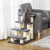 This fun and helpful stair-shaped cat tree from HBEZON makes it easy for small or aging indoor cats to climb safely to a higher spot. The frame of our cute little cat tree is made from solid weight-bearing particle board, and each step is wrapped with a soft plush cover, providing a comfy surface on the paws to reduce pain and maximize comfort while climbing. Scratching posts with sisal ropes helps sharpen the cat's claws and protect your furniture with a fun distraction.Features: