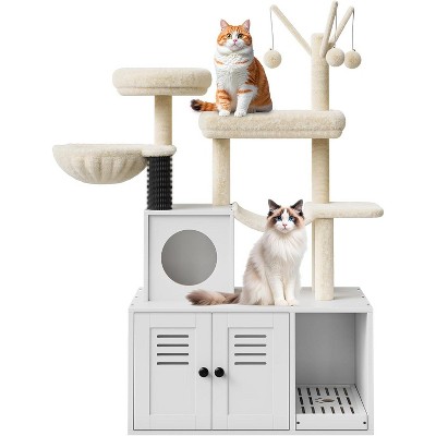 - 2-in-1 cat tree and litter box enclosure saves space and reduces clutter