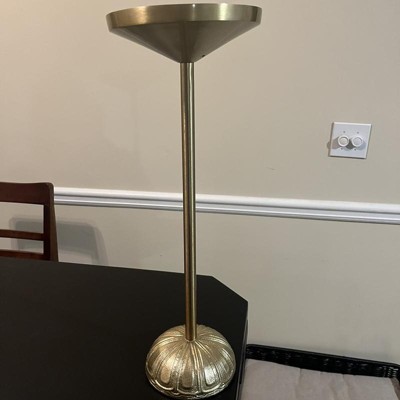 - Brass-finish metal table brings unique flair to your home