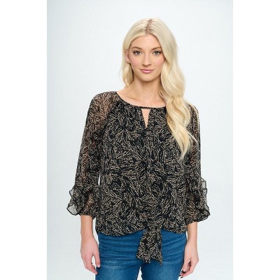 The Catalina Faux-button Front Pull-on Blouse offers a chic and sophisticated look. With its v-neckline, faux-button front, and three quarter sleeves, this top is perfect for any occasion. Made with a lightweight and soft Georgette fabric, it provides both style and comfort. Elevate your wardrobe with this versatile blouse. Partially lined for coverage. Material: Shell & Lining: 100% Polyester. Machine washable