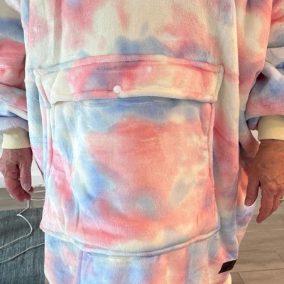 [This review was collected as part of a promotion.] For reference I am 150lbs and 5'2". This is a lovely oversized wearable blanket with fleece lining and minky exterior. I loved the cotton candy tie-dyed pattern, although there were lots of fun options to choose from. I live in a climate with four seasons and am really looking forward to wearing this during the winter months. This is really big I can curl up inside of it and it keeps my feet warm! I love it!