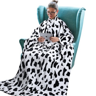 Wearable sleeved blanket robe to be worn backward: The blanket innovative design includes sleeves, allowing you to keep your hands free for activities like snacking, using a laptop, or flipping through a book without exposing your arms to the cold.