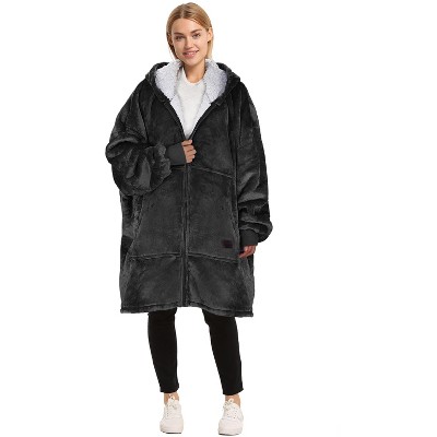 [This review was collected as part of a promotion.] This oversized blanket hoodie from Catalonia is great for cozy nights in as it's getting colder out. There are lots of colors and designs to choose from. It's very comfortable and soft and great to snuggle up in to read a book or watch a movie. It's one size fits all and I think thats accurate. I'm 5 feet 5 inches and 175 pounds, for reference. It has a pocket in front just like a regular hoodie.
