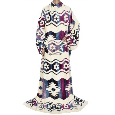 Wearable sleeved blanket robe to be worn backward: The blanket innovative design includes sleeves, allowing you to keep your hands free for activities like snacking, using a laptop, or flipping through a book without exposing your arms to the cold.