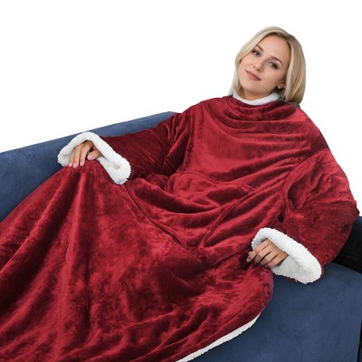 Wearable Sleeved Blanket to be worn backward: Designed in the U.S.A, Catalonia Deluxe Micro Fleece Blanket with arms and built-in foot pockets to keep feet warm. Sleeves cover shoulders, arms and keep hands free, will not slip down. Opening in the back.