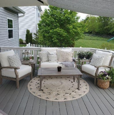 We bought this table for our outdoor space and we love it! It’s exactly the size we needed and it creates the look we wanted as well. It also doesn’t feel cheap like other pieces of furniture we looked at.