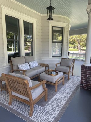 Very pleased with our purchase of the Caterina Teak Loveseat with Navy Cushion. We have “activated” our back porch! It is comfy, the perfect size, and looks great.