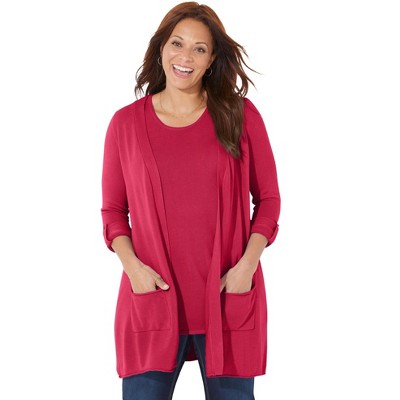 Catherines Cashmiracle; Buttonfront Cable Cardigan - 5X, Red Ochre