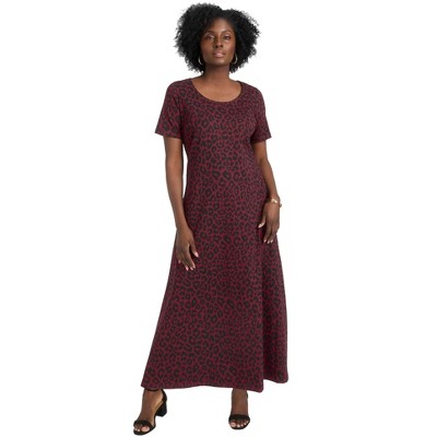 Catherines Easy Faux Wrap Dress - 1X, Red Geo Animal