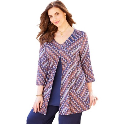 Catherines Impossibly Soft Tunic & Scarf Duet - 0X, Black Ivory Buffalo Check