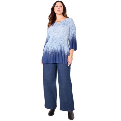 Catherines Hayden Tie-Sleeve Knit Top - 6X, Blue Brushed Tapestry