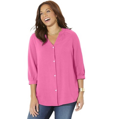 We love the tailored attitude of this easy-to-wear, textured blouse. With pleated details at the Y-neckline, buttonfront and classic cuffs, it’s our dressed-up version of carefree comfort..