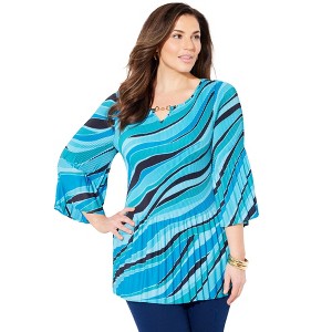 One of the most flattering blouses you'll ever own, thanks to the silky-smooth georgette fabric with slimming pleats throughout. You'll love the pretty chain detail at the keyhole neckline and tunic length for comfort and coverage. Pair it with Refined or Right Fit pants for a smooth, polished look..
