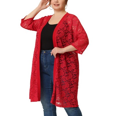 Catherines Anywear Velvet Burnout Cascade Cardigan - 1X, Classic Red Geo Burnout