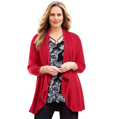 Catherines Anywear Velvet Burnout Cascade Cardigan - 6X, Classic Red Geo Burnout