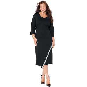 Catherines Asymmetrical Bell Sleeve Ponte Dress - 1 of 4