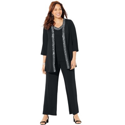 Catherines Beaded 3-Piece Cardigan Pant Suit