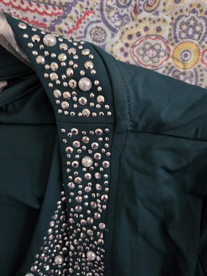 This was the 3rd outfit I ordered, returned 2. They all had wide gaps of missing beads. I wore the 3rd but more beads fell off at the wedding. Target was great but the company Catherines, who is the seller, has a problem. The 3 pc pant suit has the potential to be awesome. It's beautiful, the material is great, no wrinkles, comfortable, but the beads are difficult to deal with. The third outfit that I wore is now useless because it has missing beads. If Catherine's would be so kind as to send me some extra beads, that I could glue back on, I at least, could wear it again. Please! I want to love this! Thank- you p.s. this system would only let me post 2 pics