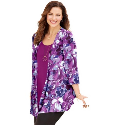 Catherines Sequin Trim Tank Cardigan Duet - 1X, Dark Sapphire