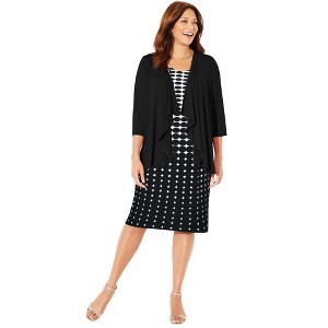 Enjoy the beauty of two perfectly matched pieces for the ease and value of one. Thisgo-to shift dress is soft, sleeveless and comes with a removable cascade jacket. Wear as a set, or mix and match with many other pieces in your wardrobe..