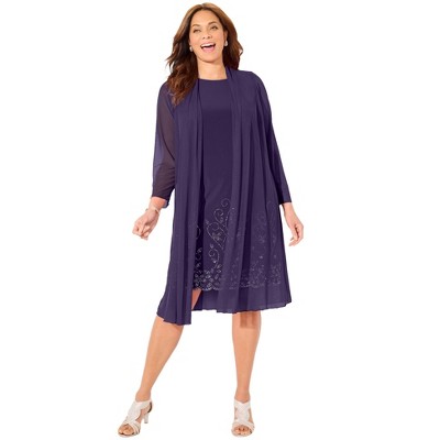 This two-piece set loves a special occasion. Why not wear this to your next social engagement and get ready for lots of ‘oohs and ahhs’. Try it and you’ll see what we mean. The scoop neck sleeveless shift dress is a perfect match to the crochet laced jacket..