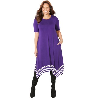 A classic wrap-dress silhouette without the struggle. With its easy pullover style and faux-wrap front, this effortless dress hangs beautifully from the moment you put it on. Soft panels of fabric overlap in front creating a tulip hem that visually slims your shape..