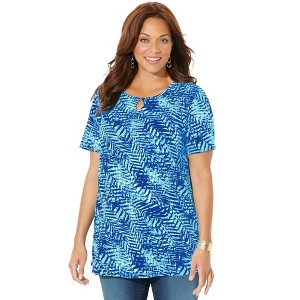 Your favorite easy tee in an easy fit.Love our Easy Fit Tee Collection? Try this new style with button-and-loop teardrop openwork at the neckline. Like all Easy Fit tunics, it's designed with a more generous fit and longer length for comfort and coverage.
