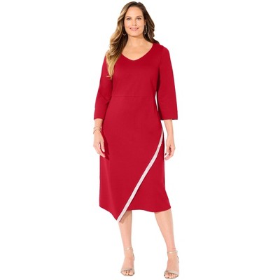 Catherines Faux Pearl Trim Ruffle Sleeve Shift Dress - 5X, Red Lipstick