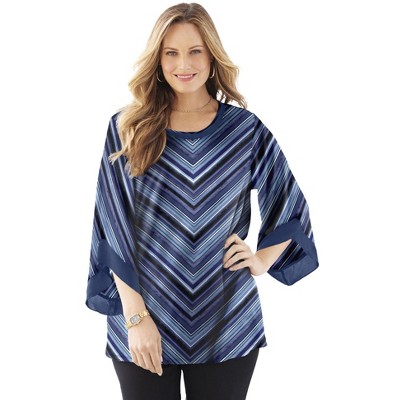 Catherines Flounce Sleeve Top - 3X, Vibrant Blue Paisley