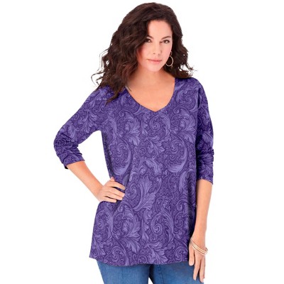 Catherines Dream Drape Bell Sleeve Top - 3X, Multi Etched Stripe