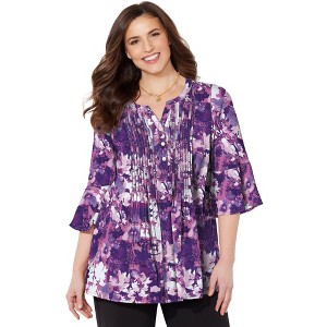 Effortlessly beautiful and sophisticated, this top features a delicate pattern for easy flair. The flounce sleeves and pleated bust add gentle movement that's absolutely flattering for a look that'll take you from work to dinner and anywhere else your day calls you.