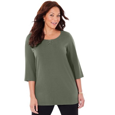 - About the brand: At Catherines, we design quality plus size clothing for women sized 16-38 and 0X-6X. We know that soft fabrics, flattering fits and casual comfort are so important to our customers, so we obsess over every detail to get it right. From Suprema everyday comfort essentials, to fashion tops and easy elastic waist jeans, we specialize in helping plus size women feel comfortable, confident and beautiful. Our longstanding brand promise says it all: We Fit You Beautifully.