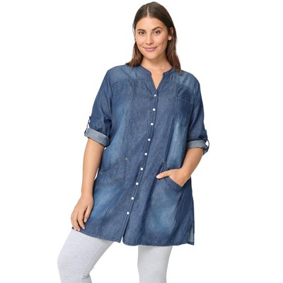 Catherines Liz&Me Buttonfront Shirt - 6X, Multi Tie Dye Paisley