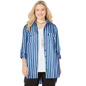 The camp shirt is a versatile piece you can wear buttoned or open over a favorite tank. We've elevated this classic to must-have status by adding refined details like goldtone-rimmed enamel-dyed buttons and convertible sleeves. Pair with Liz&Me chinos or trousers for a timeless casual outfit.
