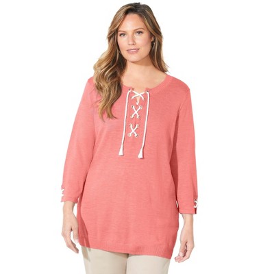 • About the brand: At Catherines, we design quality plus size clothing for women sized 16-38 and 0X-6X. We know that soft fabrics, flattering fits and casual comfort are so important to our customers, so we obsess over every detail to get it right. From Suprema everyday comfort essentials, to fashion tops and easy elastic waist jeans, we specialize in helping plus size women feel comfortable, confident and beautiful. Our longstanding brand promise says it all: We Fit You Beautifully.