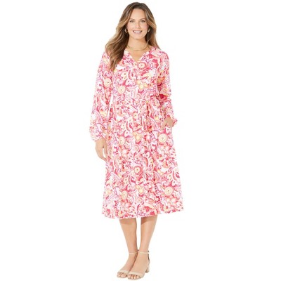 Catherines Liz&Me Ponte Knit Dress - 1X, Red Houndstooth