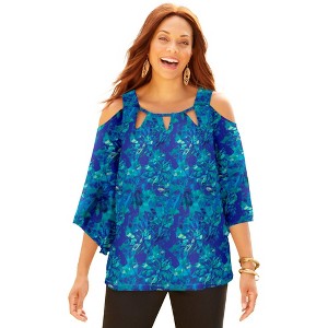 Catherines Mesh Cold Shoulder Top