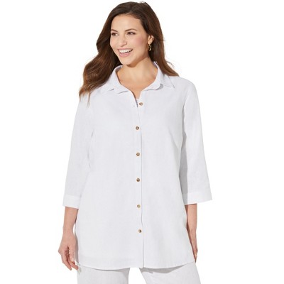 Your favorite easy tee in an easy fit. Our Easy Fit tunics are designed with a more generous fit and longer length for you comfort-lovers. Pair them with jeans, leggings, and yoga pants for pure ease and comfort from head to toe.FABRIC:Pure cotton knit that's soft, smooth, and breathable.FIT: A fuller silhouette with a longer length for added comfort and ease. V-neckline. 3/4 length sleeves. Side slits athem. This style runs large. If you are in between sizes, we recommend sizing down.