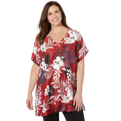 Catherines Petite Easy Fit Short Sleeve V-Neck Tunic