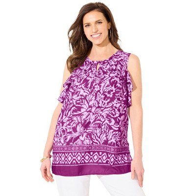 Catherines Petite Georgette Pintuck Blouse - 2XWP, Berry Pink Lace Floral