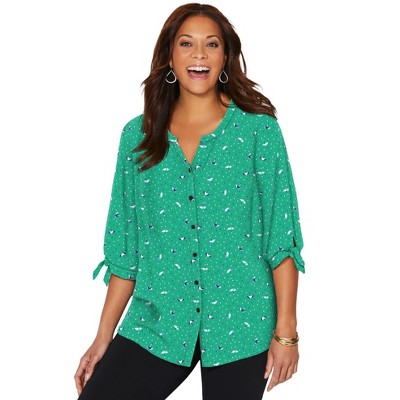 We love the tailored attitude of this easy-to-wear, textured blouse. With pleated details at the Y-neckline, buttonfront and classic cuffs, it’s our dressed-up version of carefree comfort..